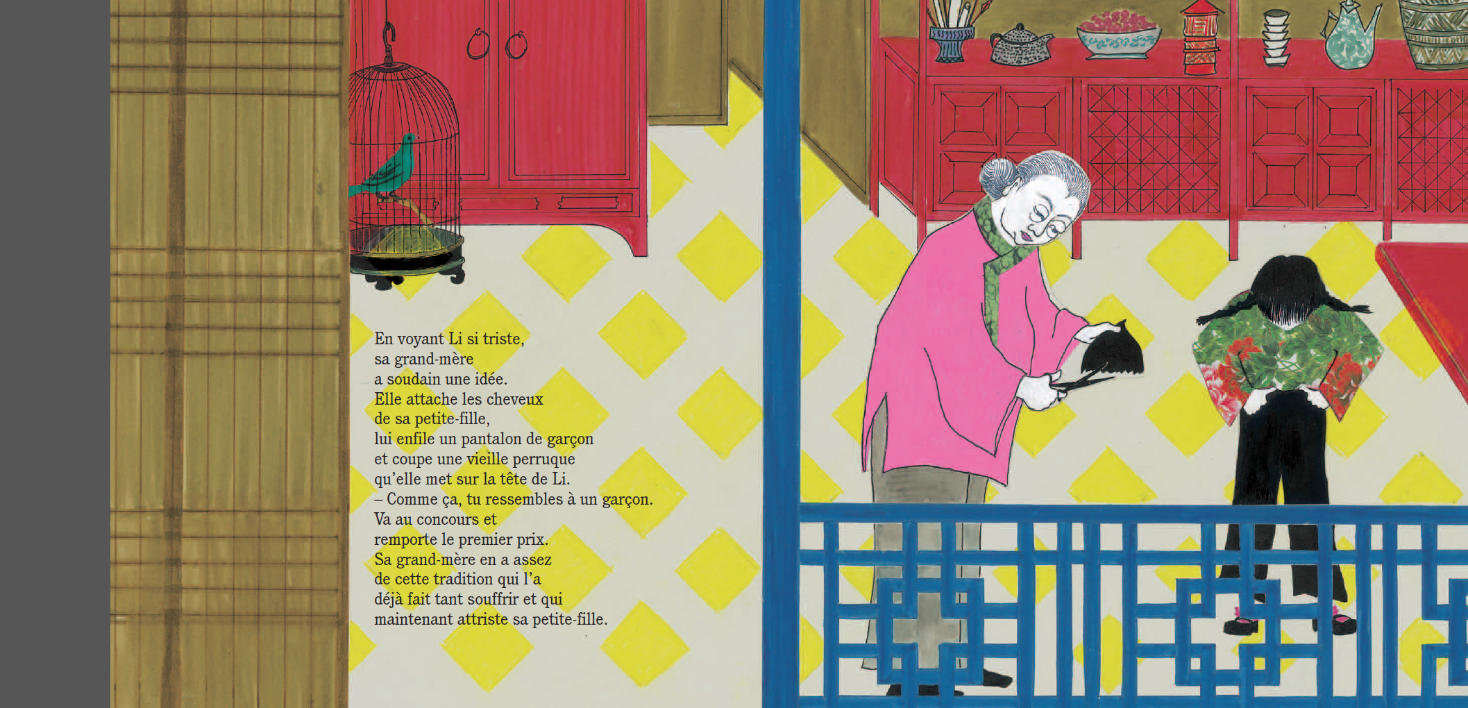 Li, une petite Chinoise de Pékin rêve de devenir calligraphe. Mais le jour du grand concours de calligraphie, elle ne peut s’inscrire. Pourtant le gagnant aura la chance d’être l’élève de Wan Ling, le célèbre maître de calligraphie, qui n’est autre que le grand-père de Li. Ce concours est réservé aux garçons ; dans la famille de Li, la calligraphie ne se transmet qu’entre hommes. Li ne peut admettre cette injustice. Sa grand-mère Zi tente en vain de la consoler, jusqu’au moment où elle a une idée…